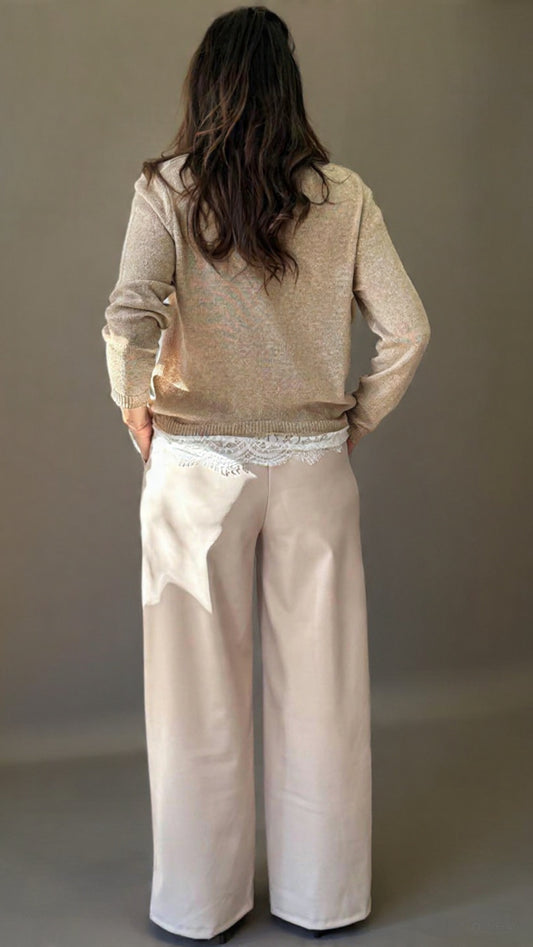 Pantalone ecopelle burro