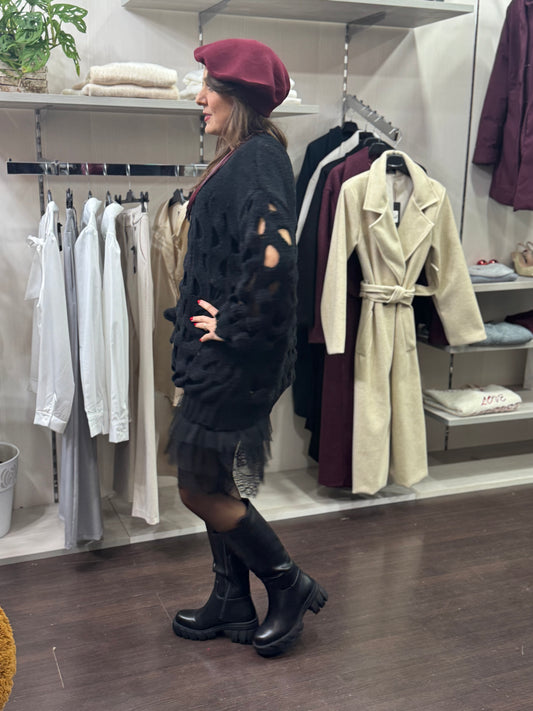 Abito nero traforato con pizzo