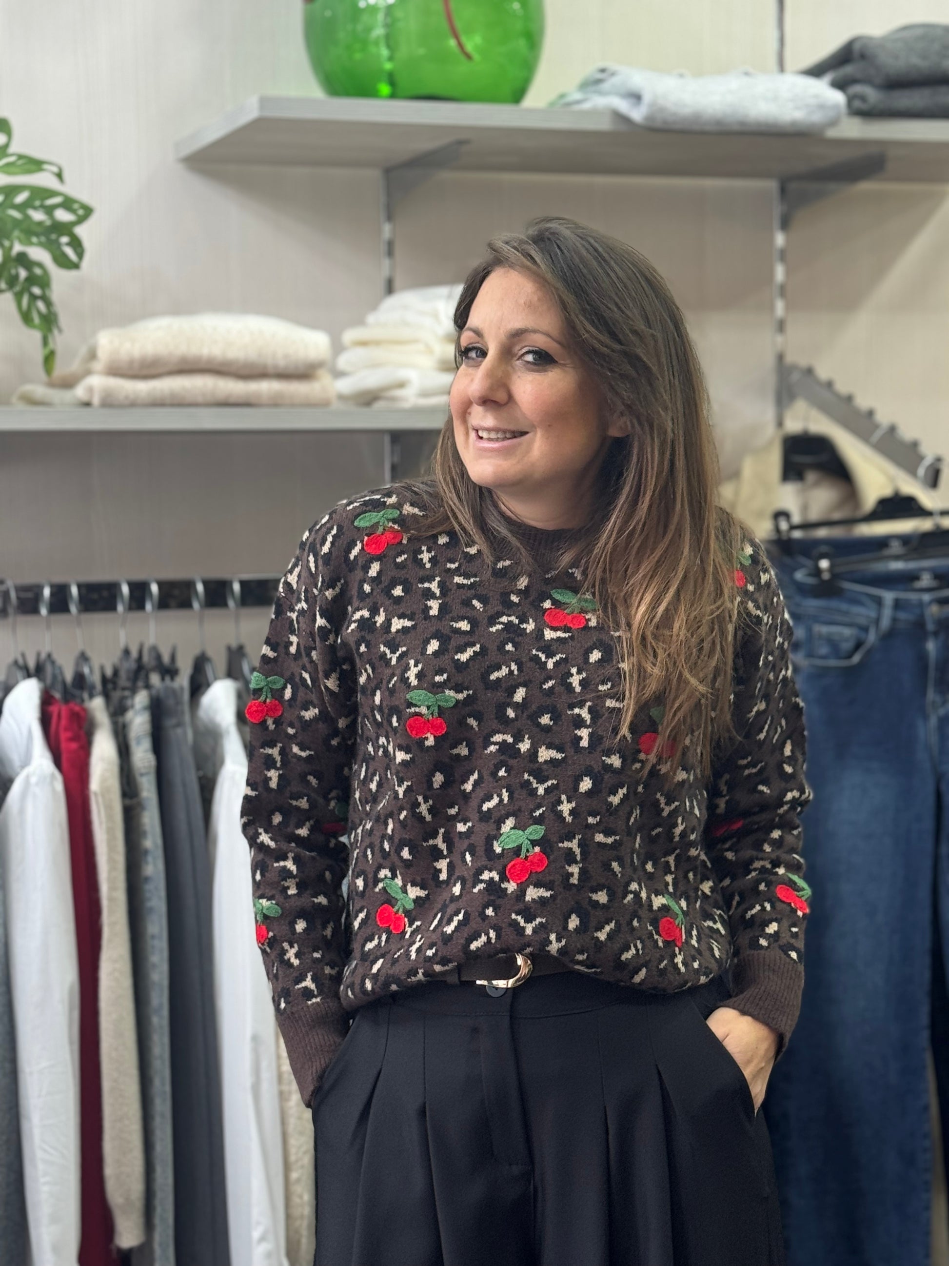 Maglioncino animalier ciliegie moro
