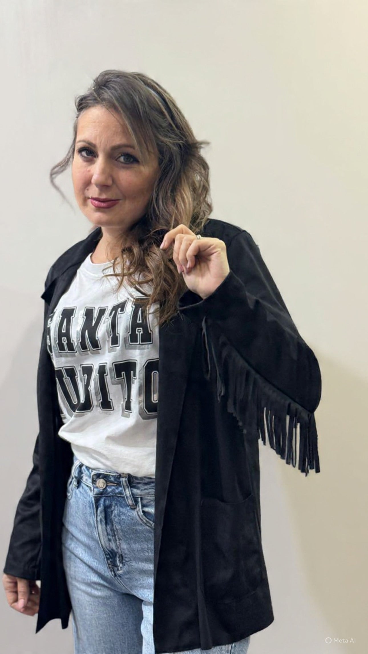 Blazer nero sued frange