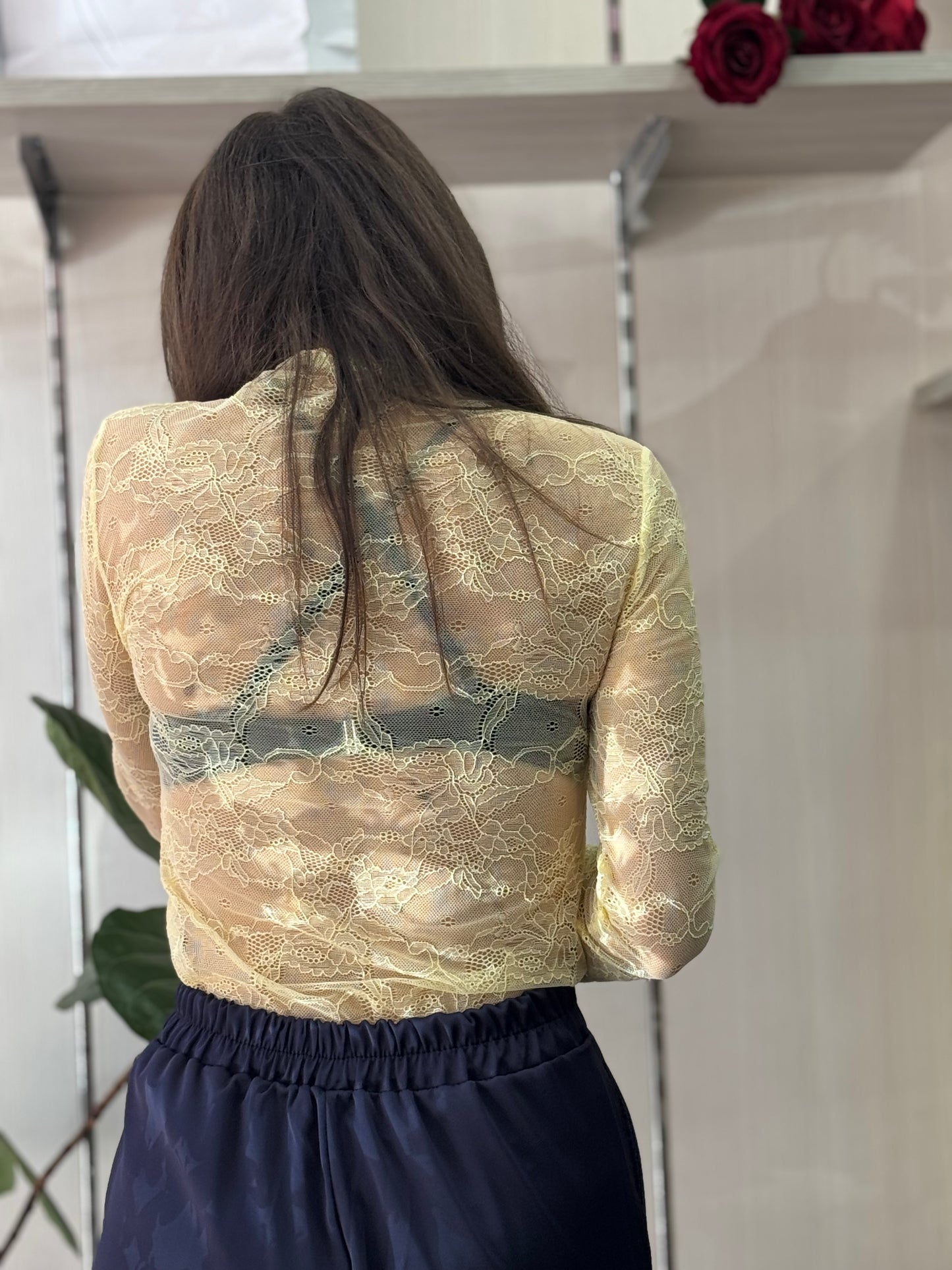 Maglia vedo non vedo in pizzo, maniche lunghe, ideale come sotto giacca veste fino ad una 48
