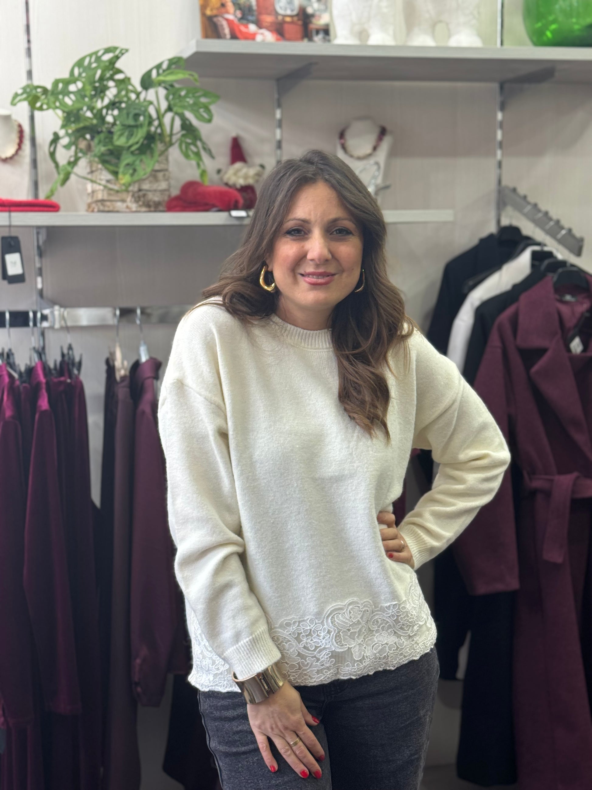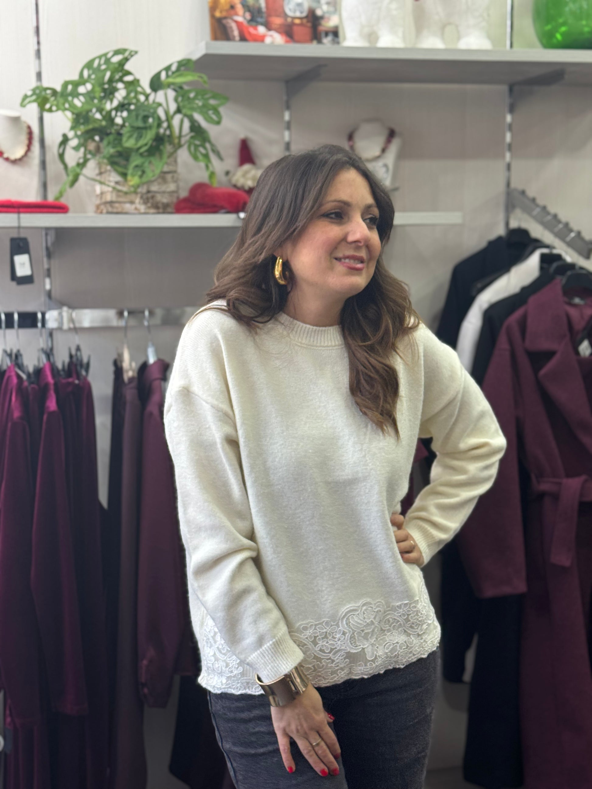 Maglioncino con pizzo panna